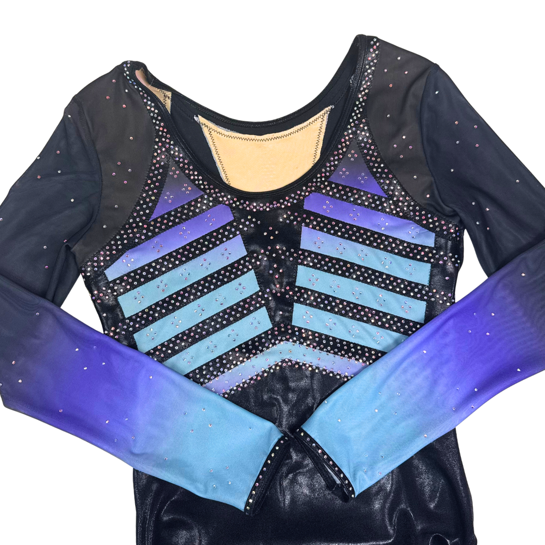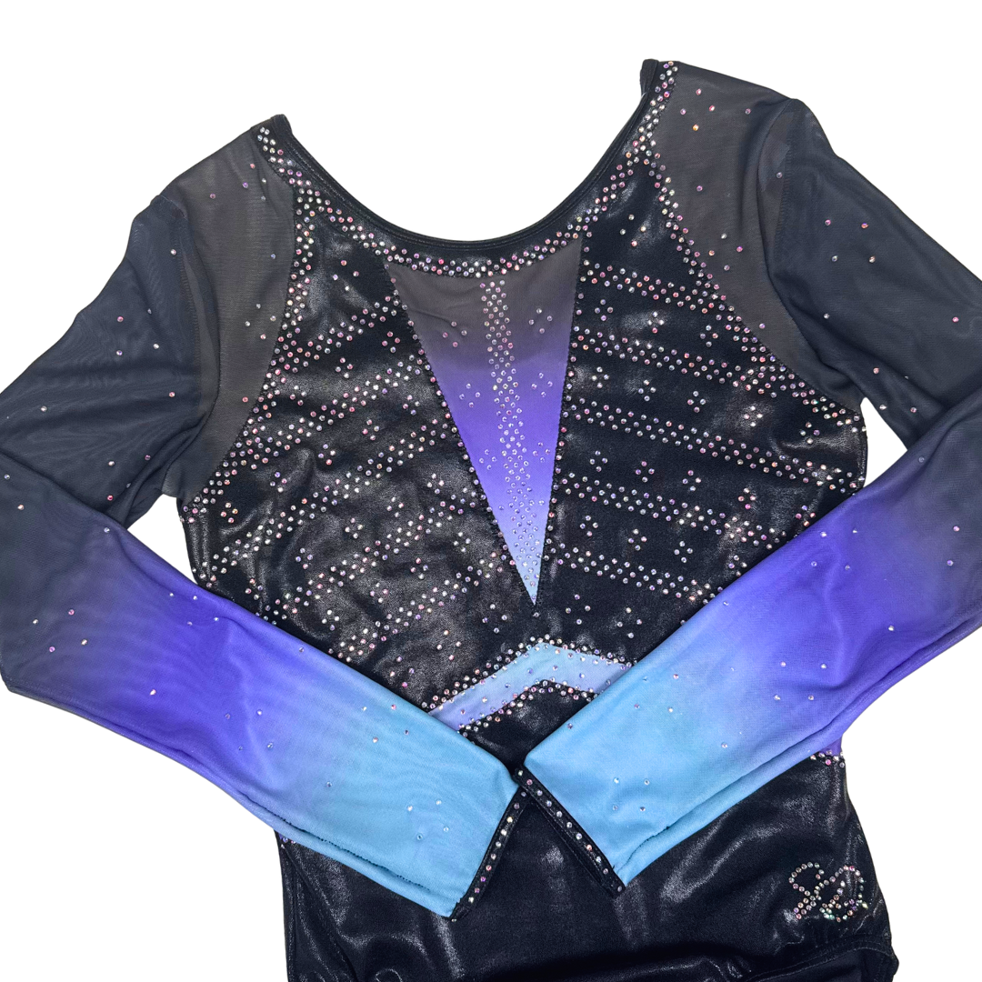 De eerste turnpakjes uit onze Luxury Collectie staan online! Meer steentjes, meer luxe en unieke ontwerpen voor een scherpe prijs. Het turnpakje is gemaakt van mystic glitter stof in de kleur zwart. De mouwen en rest van het turnpakje zijn gemaakt van gaas met een kleurverloop van zwart naar zacht paars en zacht blauw. De vele luxe crystal steentjes zijn in de kleur AB en kleuren mee als je beweegt.