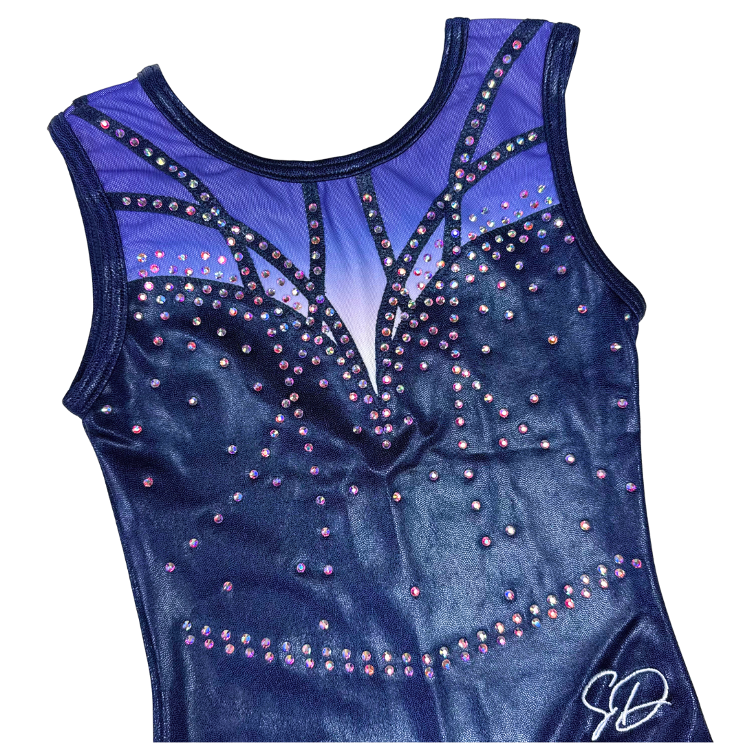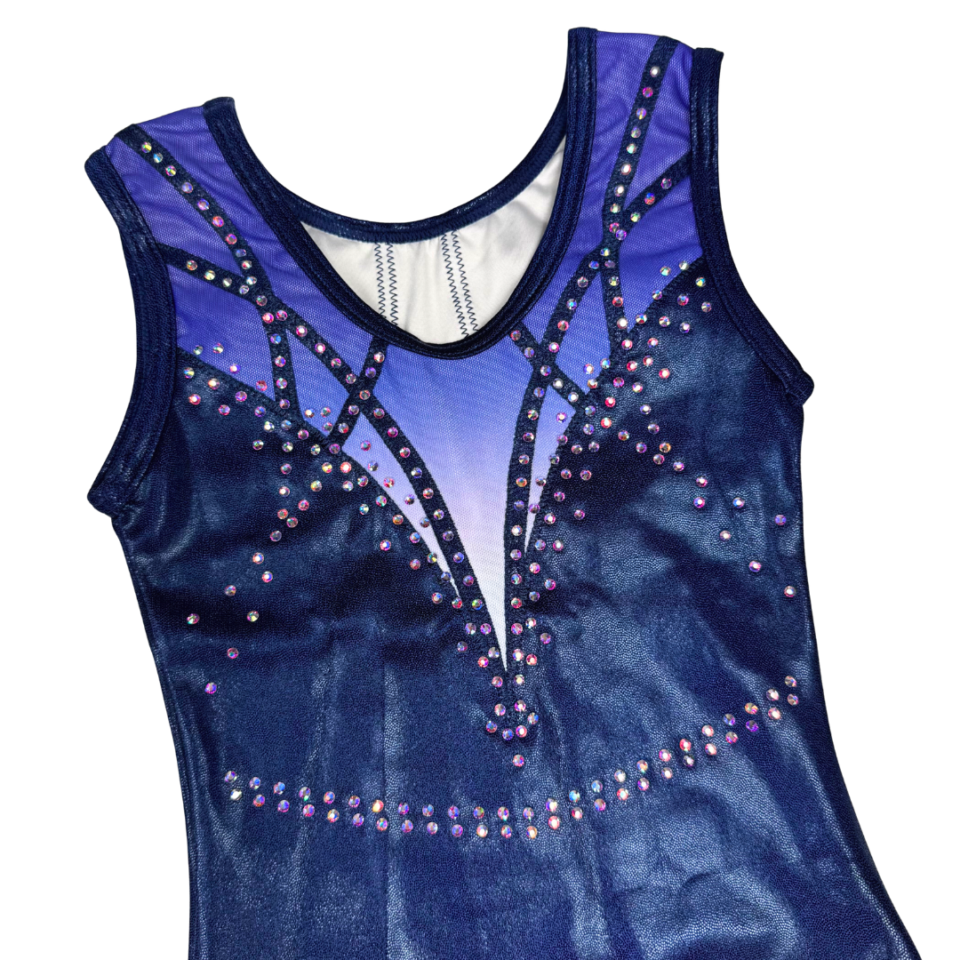 Musthave turnpakje Renate is 1 van de favorieten in onze collectie. Het mouwloze pakje is gemaakt mystic in de kleur navy met kleur verloop van wit ombre naar navy aan de bovenkant. De crystal steentjes zijn in de kleur AB en kleuren mee als je beweegt. Perfect om in te trainen, maar ook een eycatcher als wedstrijdpakje door de prachtige details.