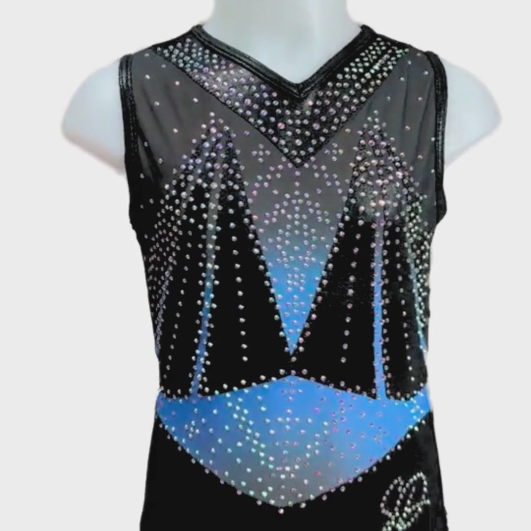 De turnpakjes uit onze Luxury Collectie staan online! Meer steentjes, meer luxe en unieke ontwerpen voor een scherpe prijs. Het turnpakje is gemaakt van mystic glitter stof in de kleur zwart. De rest van het turnpakje is gemaakt van gaas met een kleurverloop van zwart naar licht blauw ombre. De vele luxe crystal steentjes zijn in de kleur AB en kleuren mee als je beweegt. De perfecte eyecatcher om stralend voor de dag te komen tijdens de wedstrijden, maar ook ideaal te dragen tijdens een training.