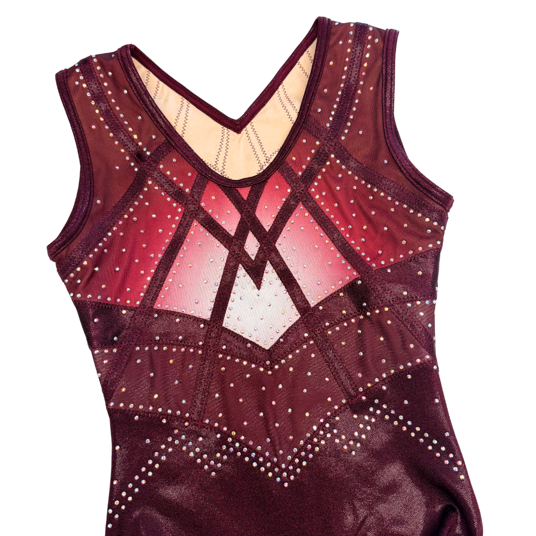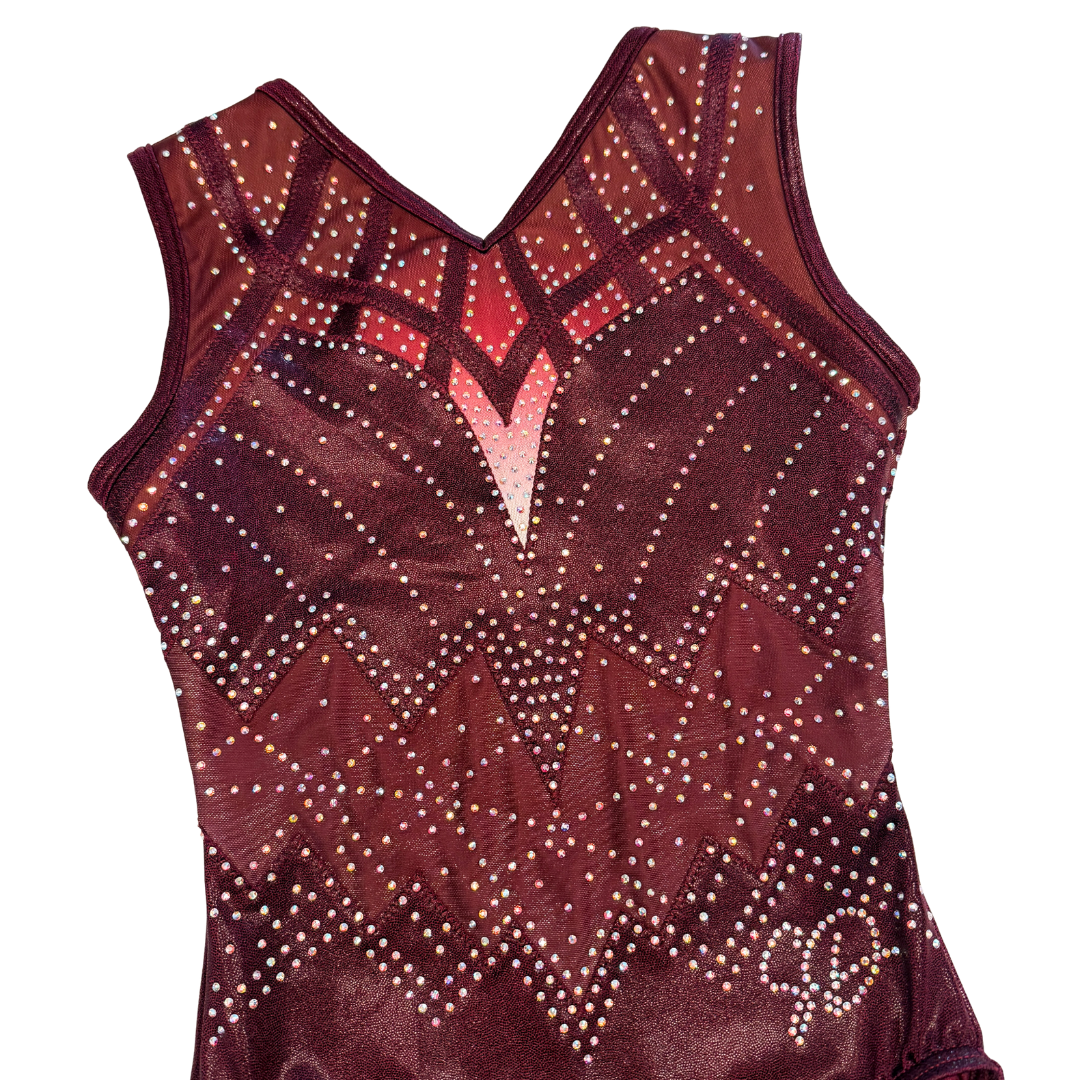 Turnpakje Fenna is gemaakt van mystic en gaas in de kleur donker aubergine. De crystal steentjes zijn in de kleur AB en kleuren mee als je beweegt. Perfect om in te trainen, maar ook een eyecatcher als wedstrijdpakje door de prachtige details.