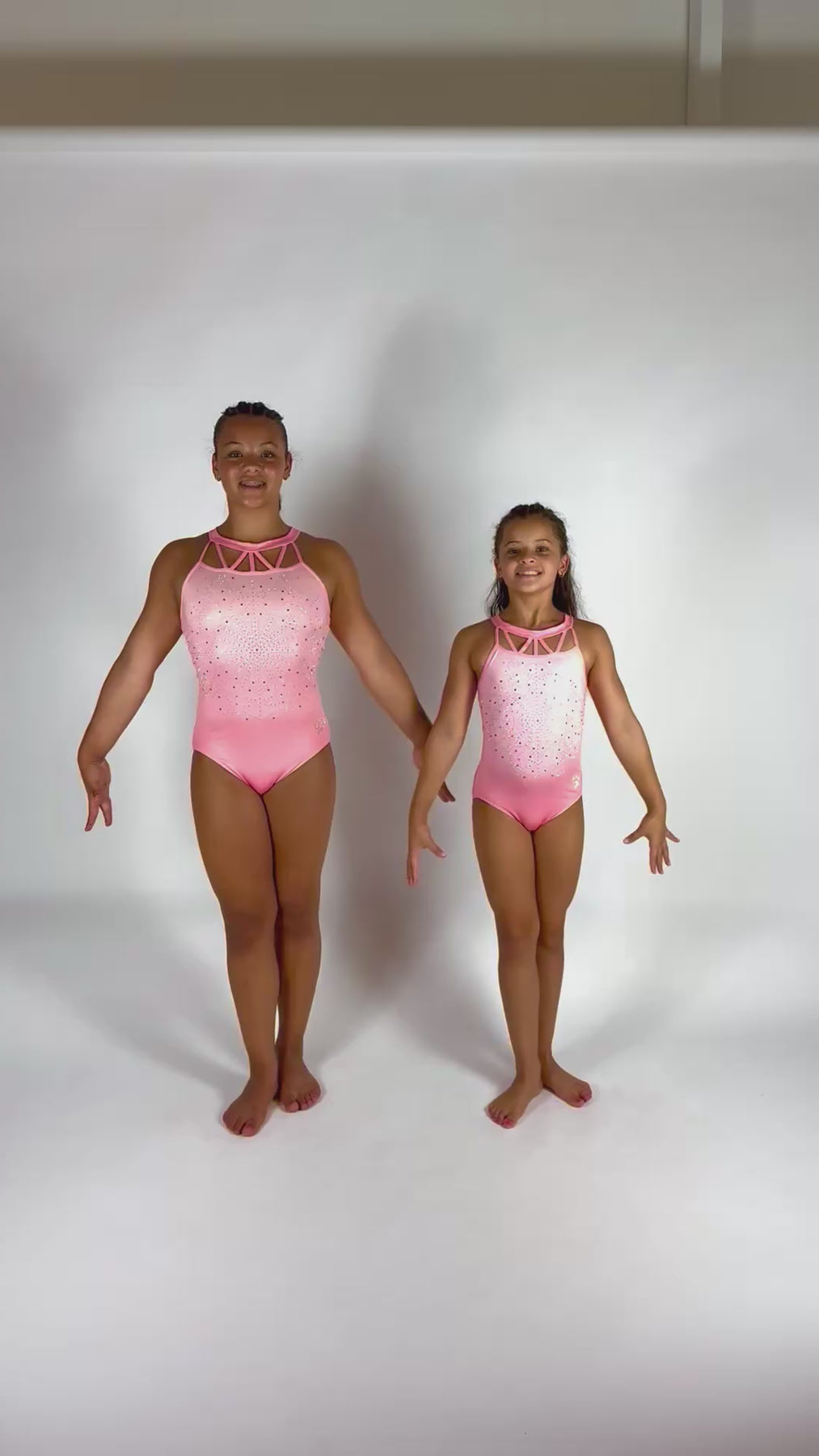 Dit prachtige turnpakje Jamie is gemaakt van koraal lycra met een overgang van licht naar donker wat een luxe effect geeft. De crystal steentjes zijn in de kleur A/B en kleuren mee als je beweegt. De achterkant en voorkant zijn speciaal en voorzien van een mooi patroon en bijzondere details.