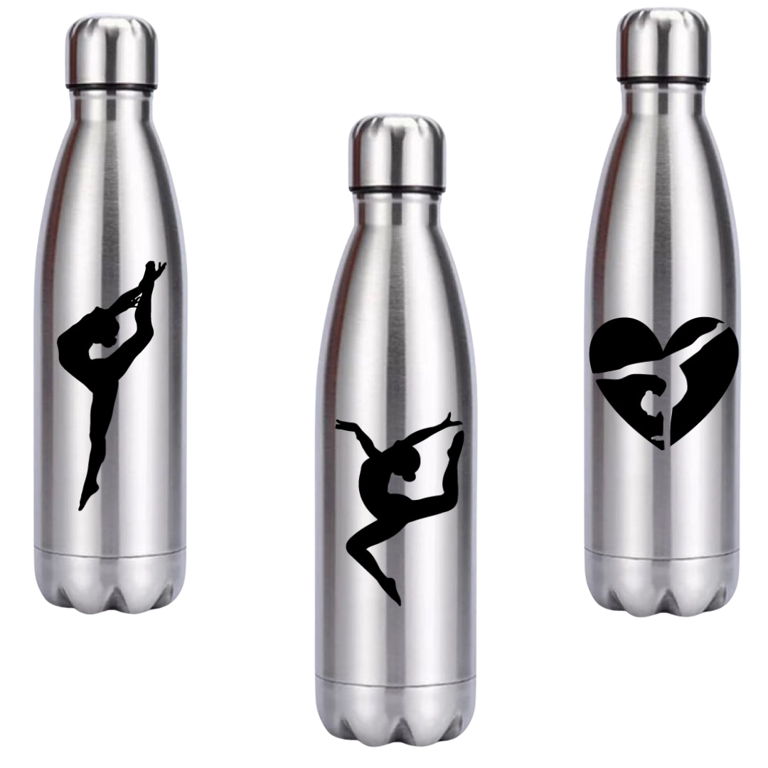Double-walled water bottle made of stainless steel with stainless steel screw cap. Content is 650 ml and 26 cm high. Provided with a picture in the shape of a jump, ring jump or heart in the color black. This must-have keeps your drink cold for hours!