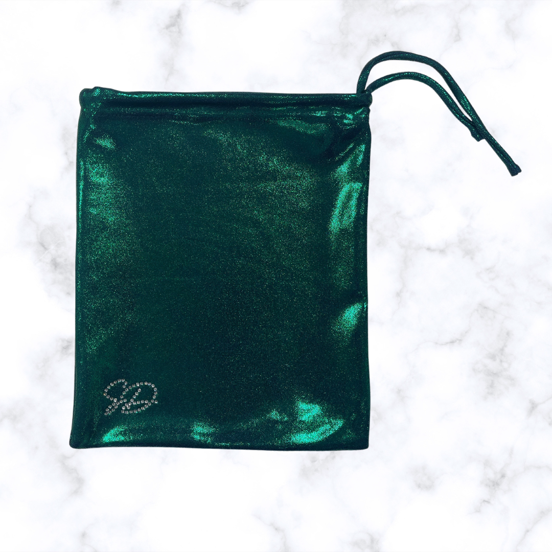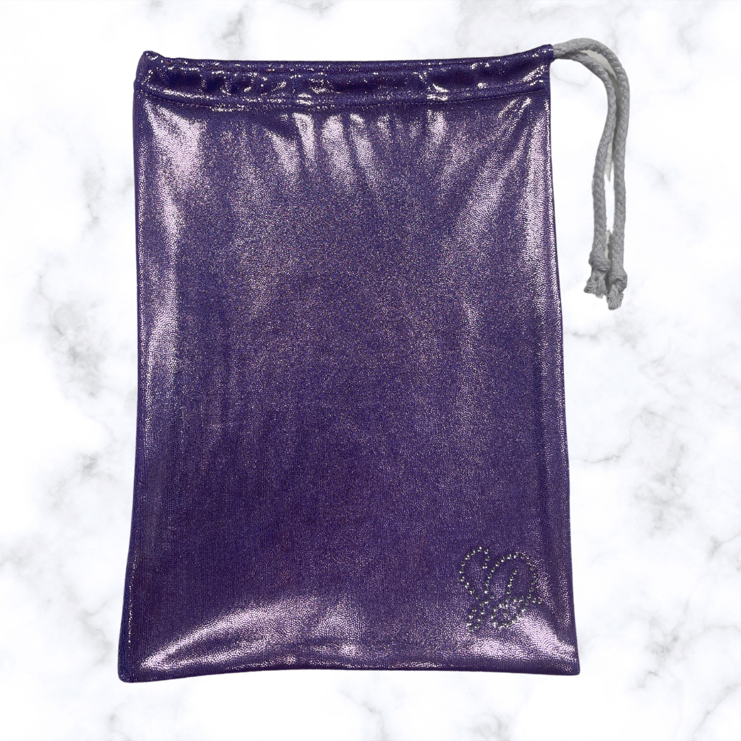 This leather/loop bag is made of mystic glitter fabric. It's the perfect match for all mystic leotards. Ideal for storing your leathers and/or loops with wristbands.