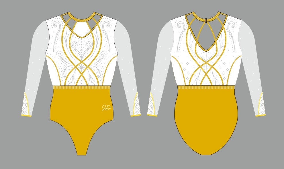 Justaucorps Elsa Doré Blanc Manches Longues ÉDITION LIMITÉE