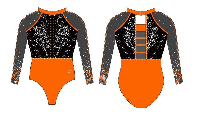Justaucorps de gymnastique Tara Orange Noir Manches longues Édition limitée