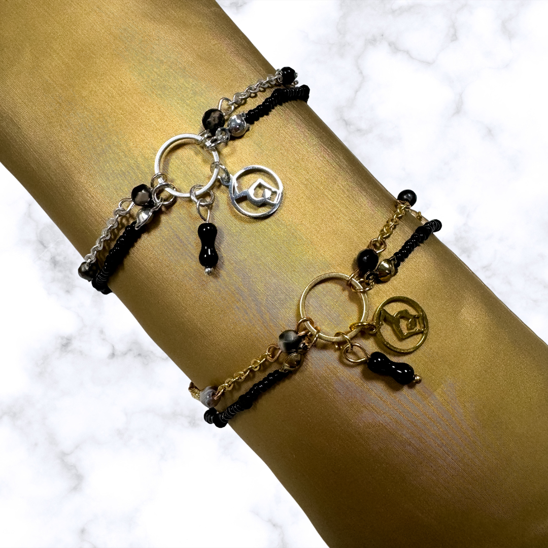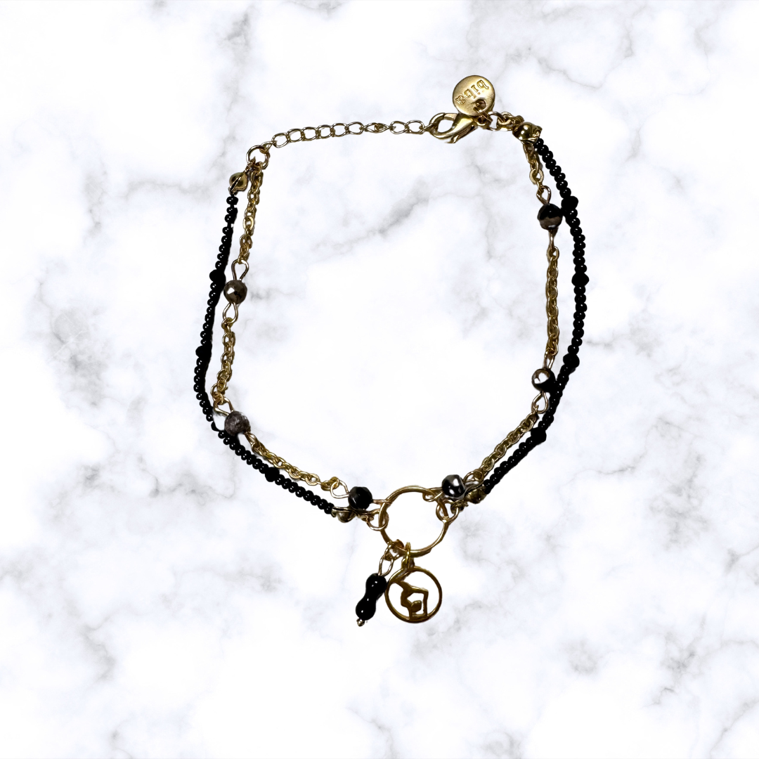 Trendy layer armbandje met kraaltjes, crystal en een turnster bedeltje. Deze musthave armbandjes zijn in lengte verstelbaar en hebben een biba bedeltje aan de sluiting.