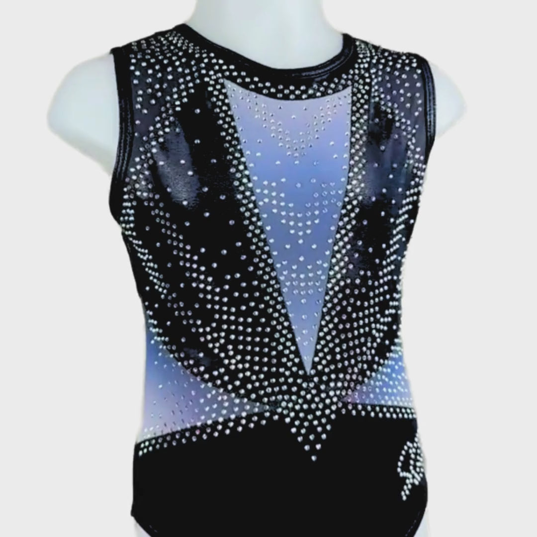 De turnpakjes uit onze Luxury Collectie staan online! Meer steentjes, meer luxe en unieke ontwerpen voor een scherpe prijs. Het turnpakje is gemaakt van mystic glitter stof in de kleur navy blauw. De rest van het turnpakje is gemaakt van gaas met een kleurverloop van navy blauw naar wit ombre. De vele luxe crystal steentjes zijn in de kleur AB en kleuren mee als je beweegt. De perfecte eyecatcher om stralend voor de dag te komen tijdens de wedstrijden, maar ook ideaal te dragen tijdens een training.