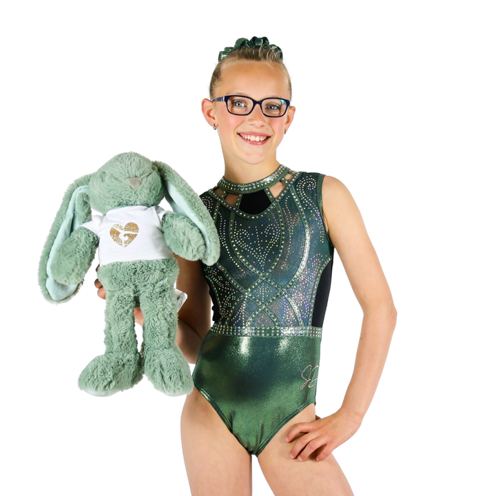Dit exclusieve mouwloze turnpakje Elsa is gemaakt van kaki groen mystic en gaas en heeft onder het gaas een glitter mystic laagje in de kleuren kaki groen en zwart wat een prachtig effect geeft. De crystal steentjes zijn in de kleur A/B en kleuren mee als je beweegt. De achterkant en voorkant zijn speciaal en voorzien van een mooi patroon en bijzondere details.  Door de korte mouwen ideaal om mee te trainen, maar ook perfect te dragen als clubpakje door de mooie details en luxe uitstraling.
