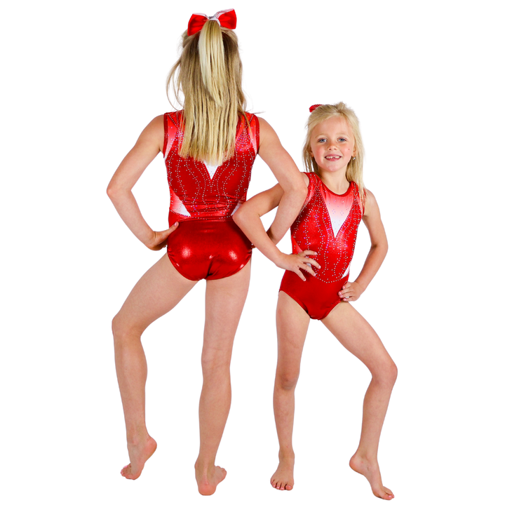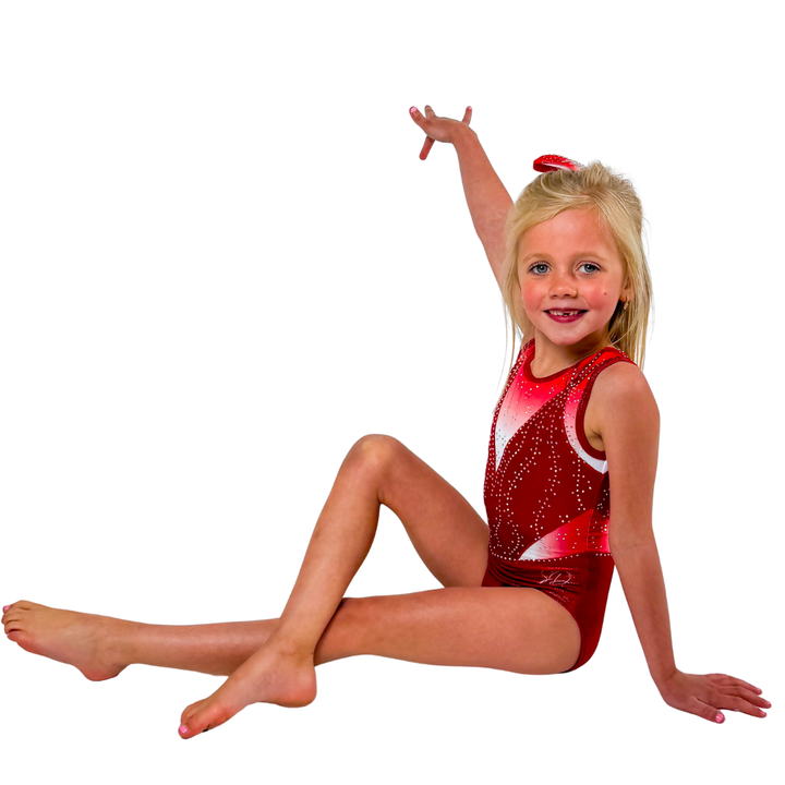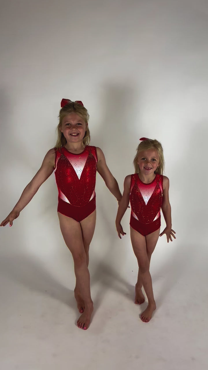 Turnpakje Vive is gemaakt van mystic in de kleur rood met een kleur verloop van wit ombre naar rood aan de bovenkant en zijkant. De crystal steentjes zijn in de kleur AB en kleuren mee als je beweegt. Perfect om in te trainen, maar ook een eycatcher als wedstrijdpakje door de prachtige details.